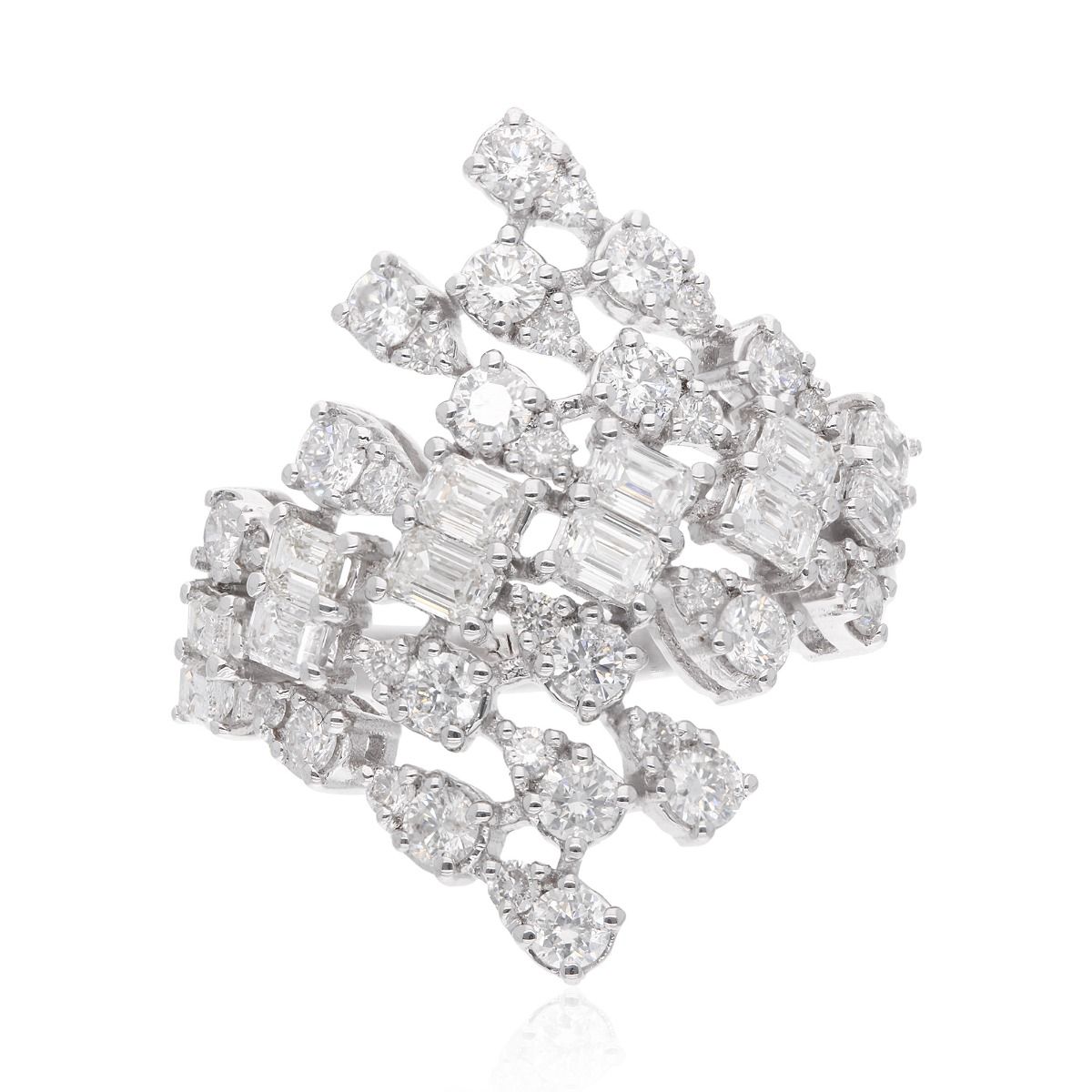 Natural 2.07 Carat HI Color SI Clarity Baguette & Round Diamond Statement Ring 18k White Gold Handmade Jewelry Birthday Gift For Her
