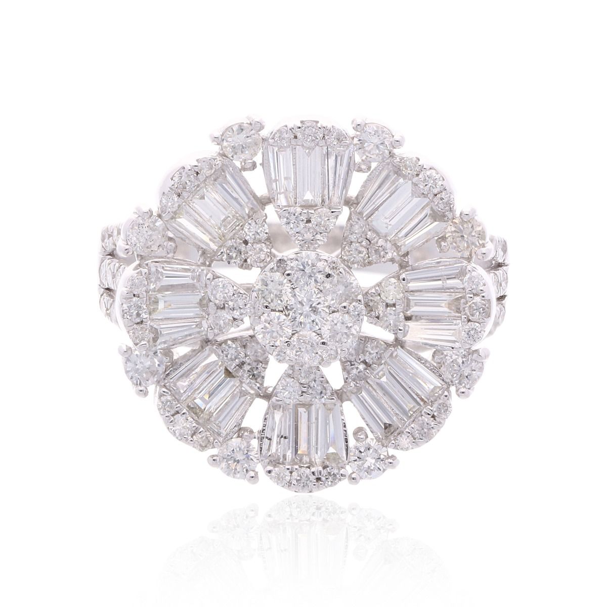 Natural 2.15 Carat HI/SI Diamond Floral Ring Solid 18k White Gold Handmade Jewelry Anniversary Gift For Her